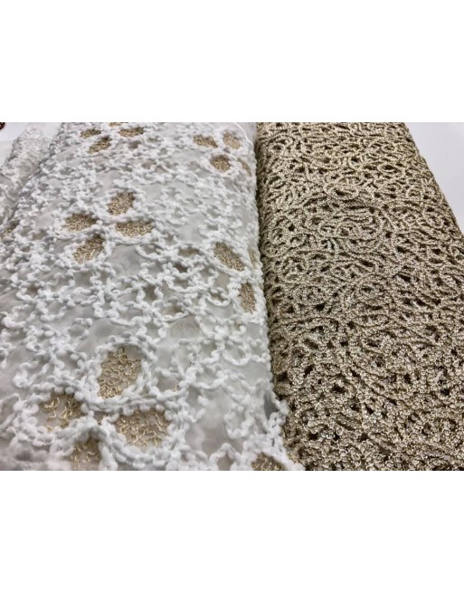 Tessuto ricamato avorio e oro